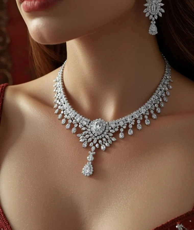 How We Produce Womens Designer Natural Diamond Necklace in Surat