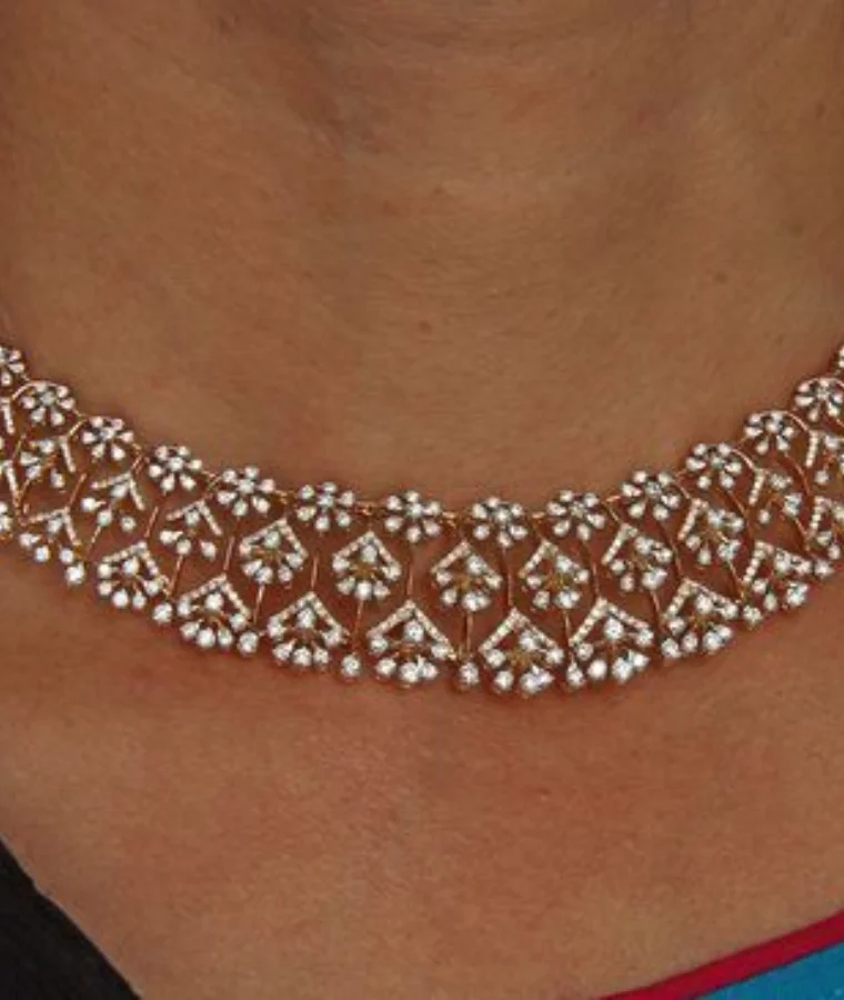Womens Gold Natural Diamond Necklace in Surat for Timeless Elegance